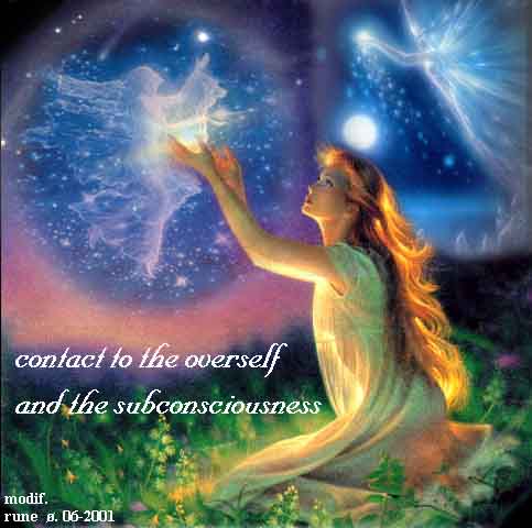 Through MEDITATION and conscious, concentrated prayer - a connection to the soul or the overself is made/etablished. The overself collects the experiences the external person makes in the different incarnations through the "cosmic schoolclasses". This overself is on a higher level where pain cannot be experienced. Thats why it has to "create" - through a pair of parents - a body in this heavy material, in the purpose of  gathering experiences in "suffering". Those is - seen from the higher levels - necessary in the process of perceiving. The more one uses this "channel" to the overself - the more it will be strengthen and developed. NOTE: IT IS THE OVERSELF THAT MEETS YOU IN THE END OF THE LIGHT-TUNNEL, AS IT IS DESCRIBED IN THE MANY NEAR-DEATH-EXPERIENCES OF TODAY.