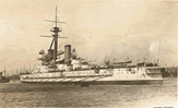 Data for Brazil Battleship Sao Paulo - picture below; 19,300 tons, L=543 feet, maxspeed 21 knots, Laid down in 1907, launched on April 19, 1909 and commissioned in July 1910