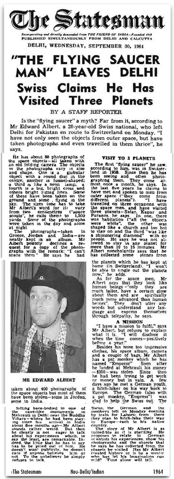 Brunner viste Good en artikkel fra "The New Delhi Statesman". Avisen var datert 30. september 1964. "Den sveitsiske 'flyvende tallerken-mannen' forlater New Delhi. Hevder han har besøkt tre fremmede planeter", lød overskriften.