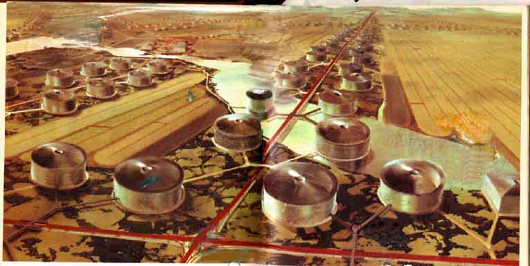 How do Iargans build their houses? This efficiency began to tickle my sense of humor. They began by building a factory, on site, and placed in it one of the mechanical monsters that produced the complete, ready-for-use, plastic housing units. Each unit was roughly sixty by sixty feet and eighteen feet high, completely finished with glass, furniture, household machines, communication system, and so on, divided into two layers or floors. (see pictures/drawings made from this Iarga-contact on http://www.galactic-server.net/rune/iarga.html and last - down at the buttom of this site/page here)