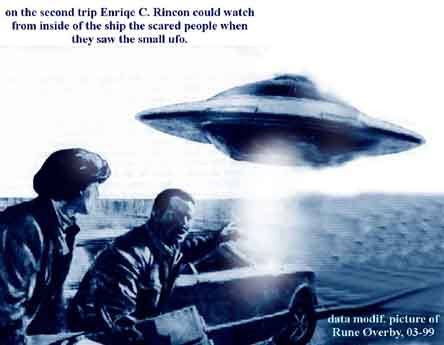 The man spoke to the witness in an unintelligible guttural language, but in a "kind and gentle manner", directing his attention upward, where through the fog Parravicini saw an unlit aerial object fifty metres above him. He became dizzy and when he recovered he found himself inside the object with three other people. One, who was "very handsome" addressed him in an unknown language, but the artist was able to grasp his meaning by telepathy. He told him not to be alarmed and that they would take him on a trip round the world, then release him. He observed surface features of Japan, France and Chile before he awoke from his 'dream', the theatre programme at his feet. Later he claimed further contacts with the beings, who said they were patrolling the Earth to see that no catastrophe befell us.
