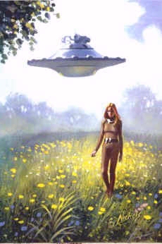 Not to be outdone, the National Tattler (2 April 1967) reported how one Jean Sheldon, out driving in Michigan, stopped "for a breath of air", when she saw a 50ft. disc surmounted by a glowing red dome. It descended, and an opening appeared in the underside, through which she was levitated on board. Here she encountered three naked male humanoids with green eyes. They too told her they wanted to mate and she had "very exciting" sex with them for over an hour. Although this was supposed to indicate they were biologically compatible, unlike Marlene, Jean did not become pregnant.